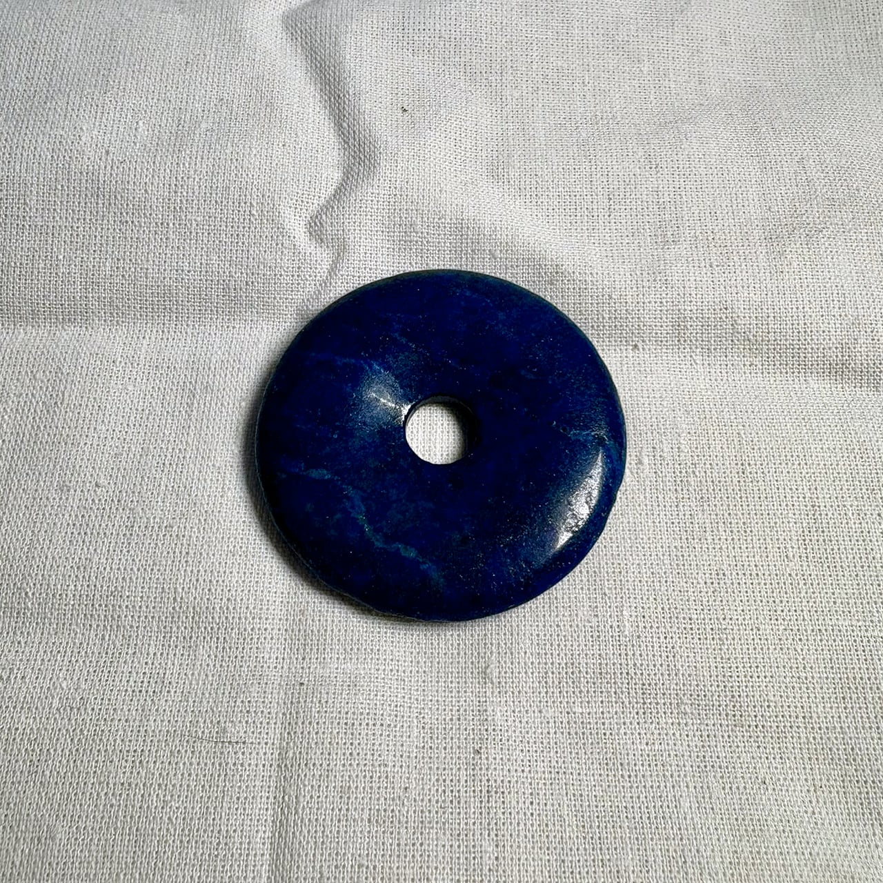ラピスラズリのパイストーンは、宇宙の真理と深い知恵に共鳴します。中央の穴は身体の中心を流れるエネルギーの脊椎、私たちのDNAの螺旋とも象徴されるクンダリーニの通り道です。七つのチャクラを8の字を描きながら昇るエネルギーは、途切れることのないループを作り出し、より高い意識レベルと魂の目的へ繋がるプロセスをサポートします。